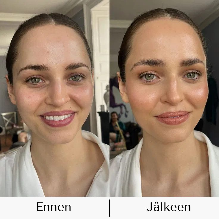 Lopputuloksena on pehmeä, huomaamaton pinta, joka korostaa kauneuttasi – peittää sen mitä haluat häivyttää, mutta antaa luonnollisen hehkusi näkyä.